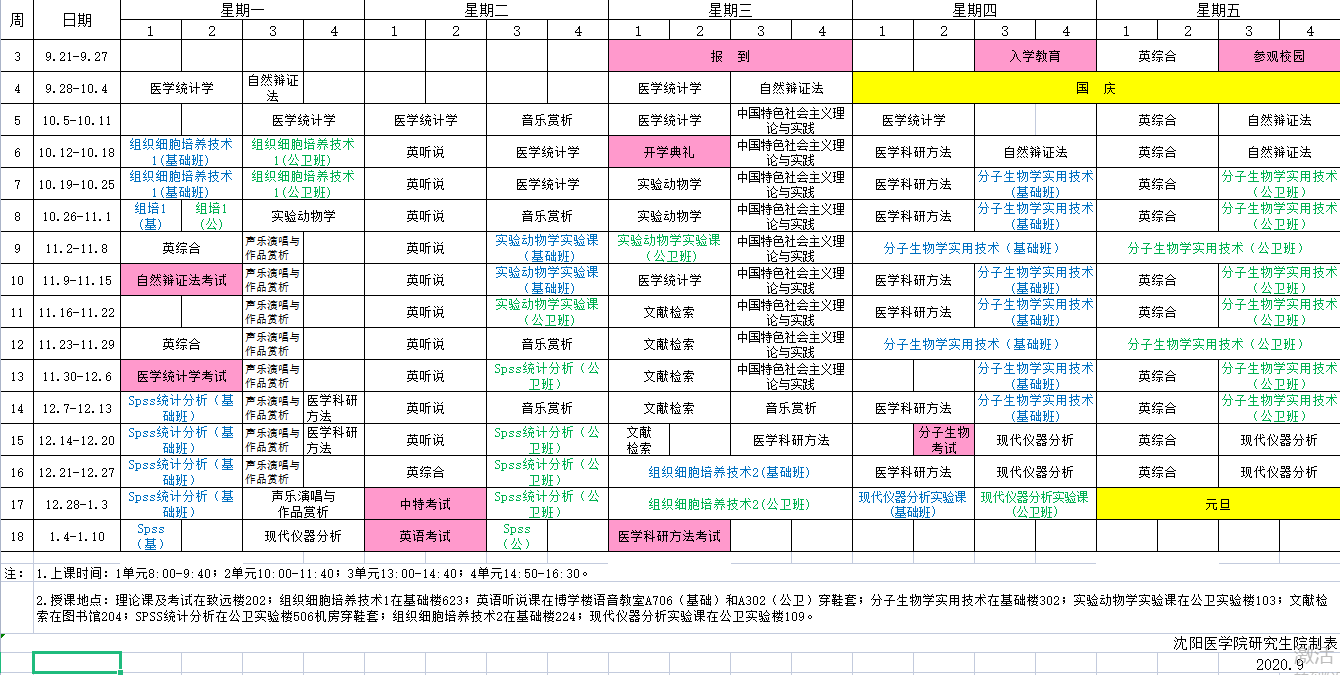 黄瓜视频 2020级硕士研究生课程表(临床医学专业学位--同等学力)